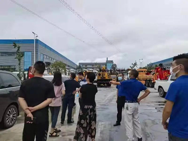 程力汽車集團股份有限公司底盤供銷湖北有限公司東風商用車底盤事業部部長黃文儒,底盤公司總經理助理胡自忠接待陪同閔科長一行先后參觀程力(曾都)汽車工業園新廠的建設經營情況。